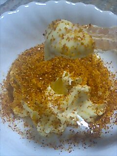 さきいかや、ポテトチップスをつけて食べるとおいしいんです!