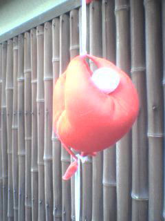 真夏の猛暑の昼下がり。八坂の塔に向かう通りで見かけた「くくり猿」。